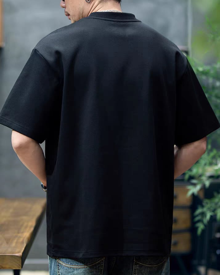 ゆったりとしたシルエットとシンプルな丸首デザインが、リラックス感のある着こなしを演出。